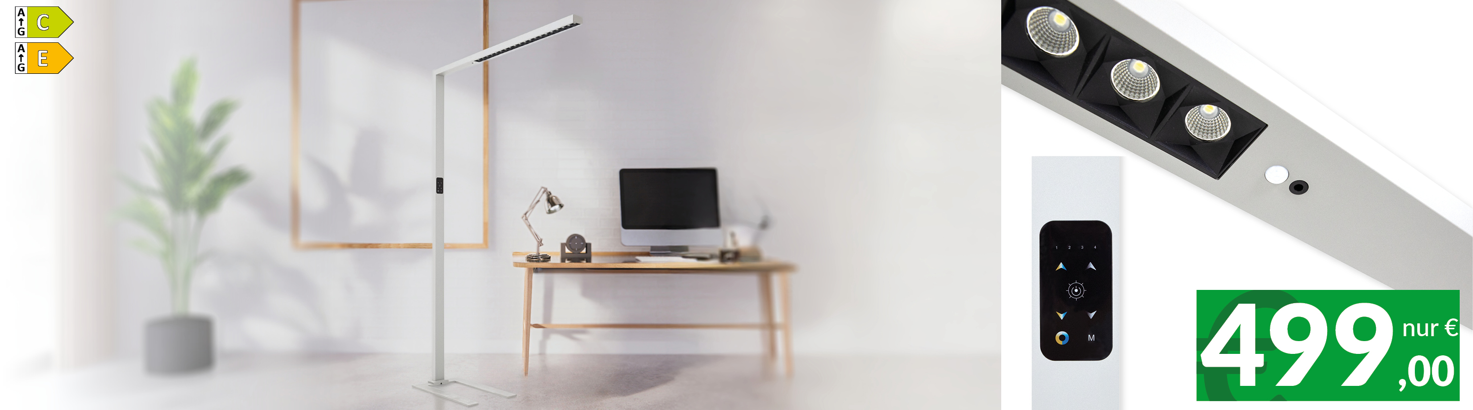 Die LED-Stehleuchte REGIS sorgt mit ihrem hochwertigen Aluminiumdesign und kraftvollem Licht für optimale Ausleuchtung. Tageslicht- und Bewegungssensor sowie stufenlose Dimmung passen Lichtfarbe und Helligkeit automatisch an und fördern konzentriertes Arbeiten.